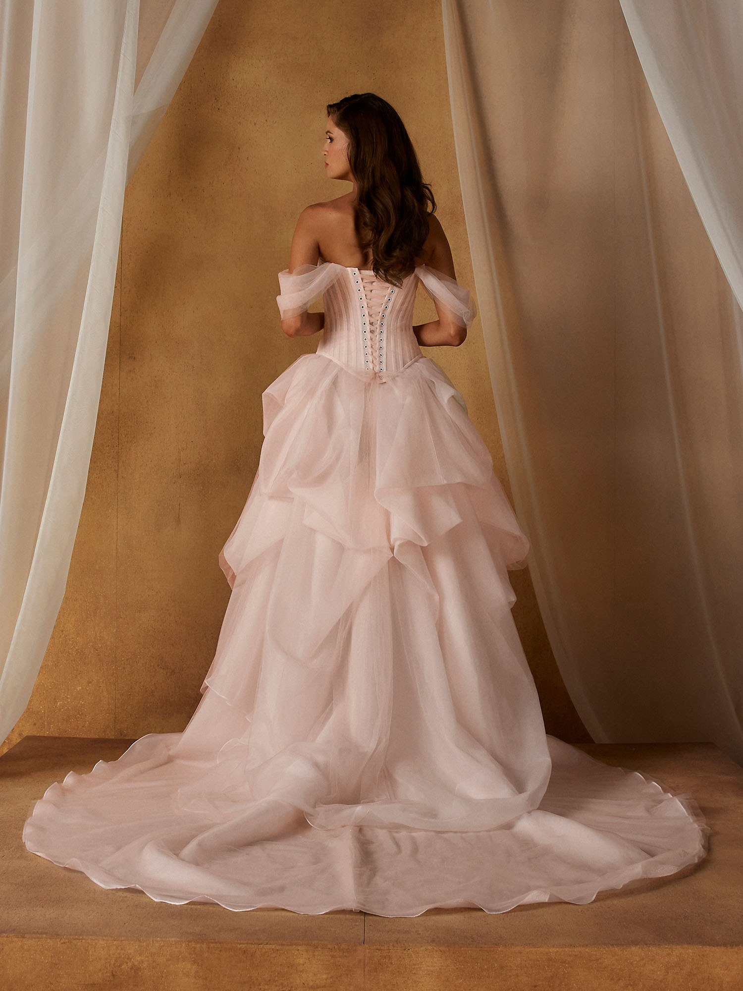 Erhältlich in den Farbtönen Blush oder Ivory für einen einzigartigen Look für unsere unkonventionellen Bräute oder eine moderne Interpretation des klassischen Brautstils.